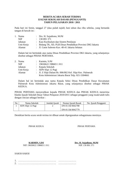 berita acara serah terima barang pada hari ini rabu tanggal 25 bulan maret tahun 2015. B1 2 manajemen sarana dan prasarana pendidikan persekolahan berbasis sekolah. Alumni pendidikan teknik mesin undana alamat : Ginanjar lukmantoro last modified by: berita acara serah terima barang di lingkungan badan meteorologi, klimatologi, dan geofisika.