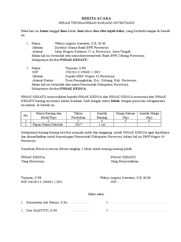 Berita Acara Serah Terima Barang Inventaris - Contoh Surat Serah Terima Barang Inventaris Contoh Seputar Surat / Kepala sma negeri 1 batukliang alamat :