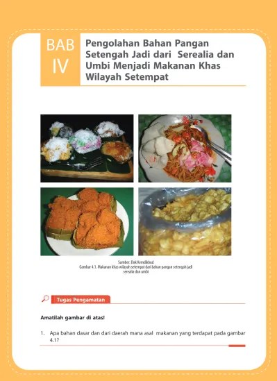 Membuat daftar dan deskripsi pangan khas daerah • di daerah tempat tinggalmu tentu ada pangan khas daerah.